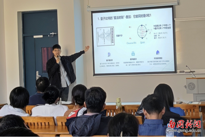 11月17日,2025年第21期博士沙龙(工作坊)在英文楼B01教室顺利举办。本次沙龙主题为《从经典比特到量子比特:叠加与纠缠驱动的计算范式跃迁》,由计算机学院邢政博士主讲,朱子江院长主持。