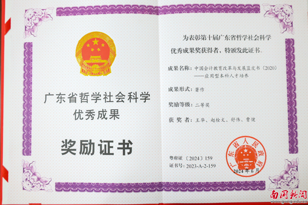 王华教授团队著作——《中国会计教育改革与发展蓝皮书(2020)——应用型本科人才培养》在第十届广东省哲学社会科学优秀成果奖评选中荣获著作类二等奖。这一殊荣不仅是对王华教授及其团队在会计教育领域的卓越贡献的肯定,更是对我校科研实力与会计学科影响力的高度认可。