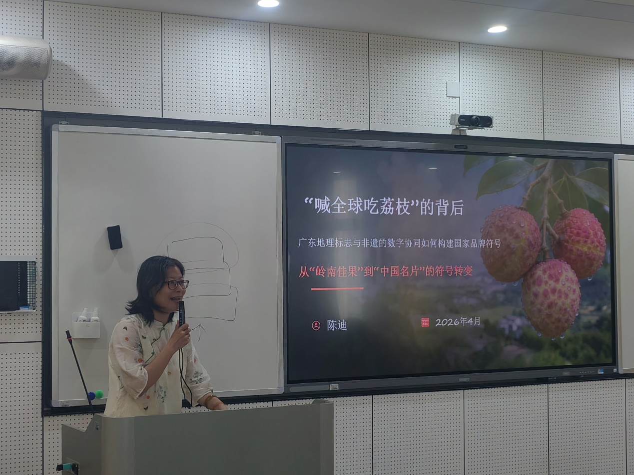 陈迪副教授以“‘喊全球吃荔枝’的背后:广东地理标志与非遗的数字协同如何构建国家品牌符号”为题,带来了极具实践价值的分享。她以广东荔枝这一地理标志产品为切入点,揭开“喊全球吃荔枝”现象背后的秘密,探讨广东地理标志、非物质文化遗产与数字营销如何协同作用,构建出强大的国家品牌符号。将荔枝的非遗技艺与地域文化转化为品牌竞争力,不仅助力产业升级,更推动广东地理标志产品向国家品牌符号转型,为非遗品牌数字化营销提供了鲜活的实践样本。