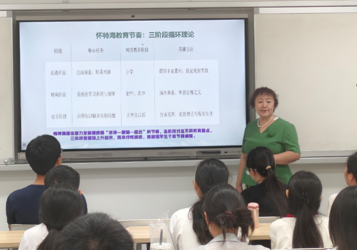 对于怀特海提出的“浪漫-精确-综合”三阶段教育节奏理论,白彦茹进行了细致解读。她认为,教育应遵循学生心智发展规律,从小学阶段的自由探索,过渡到中学阶段的系统学习,再发展到大学阶段的知识整合与应用,形成一个螺旋上升、循环推进的过程。这一理论为当前教育改革与课程设置提供了重要参考,尤其在尊重学生认知规律、科学安排教学节奏方面具有现实意义。
