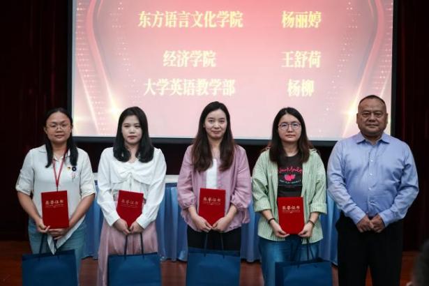 10月30日下午,图书馆2024-2025学年年度表彰大会在学术报告厅F101隆重举行。共13位优秀图书信息员、15位优秀勤工与十佳志愿者、6位风衍悦读社优秀社员获表彰。赵福春副校长参加会议,并为荣获一等奖的信息员马伟民(西语学院)、黄烨彤(英文学院)颁奖。图书馆副馆长于凝雨主持,馆长孔晓明、学生处副处长王黎明、全体信息员、获奖学生及图书馆相关人员出席本次大会。