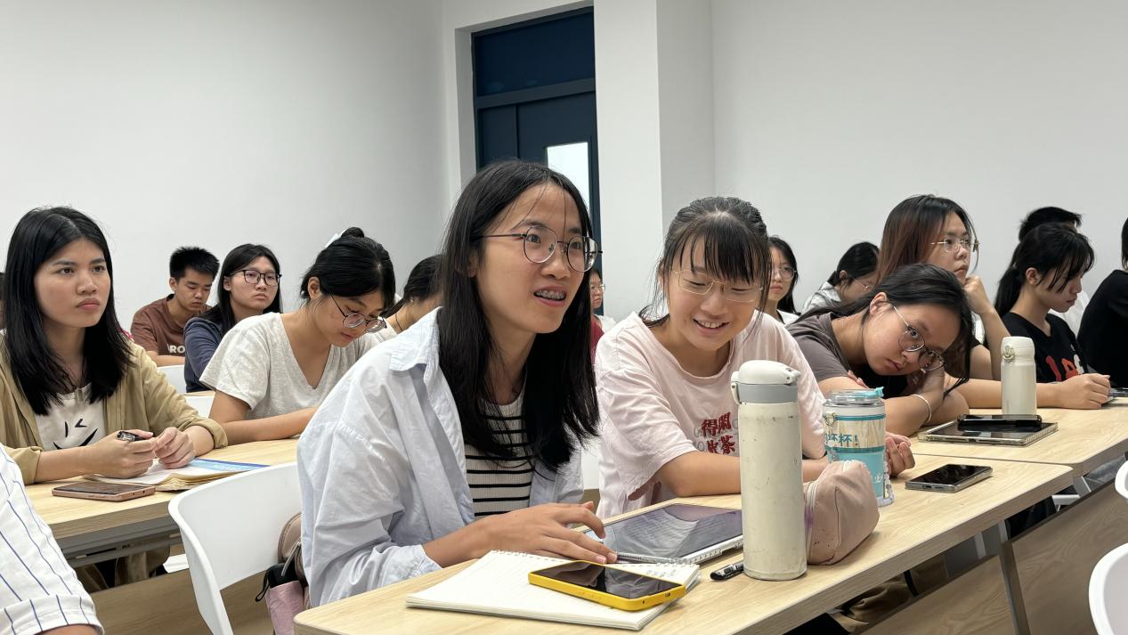 在互动环节中,同学们围绕时代背景、社会阶层、性别因素以及儒家文化等方面展开讨论,进一步延伸至人性解放、女性地位与真爱追求等现实话题。现场同学表示,此次共读通过“文本—舞台—现实”三个层面的引导,深化了对《牡丹亭》的理解,既触及古典戏曲“至情”的核心精神,也激发了当代青年对自我价值的深入思考。