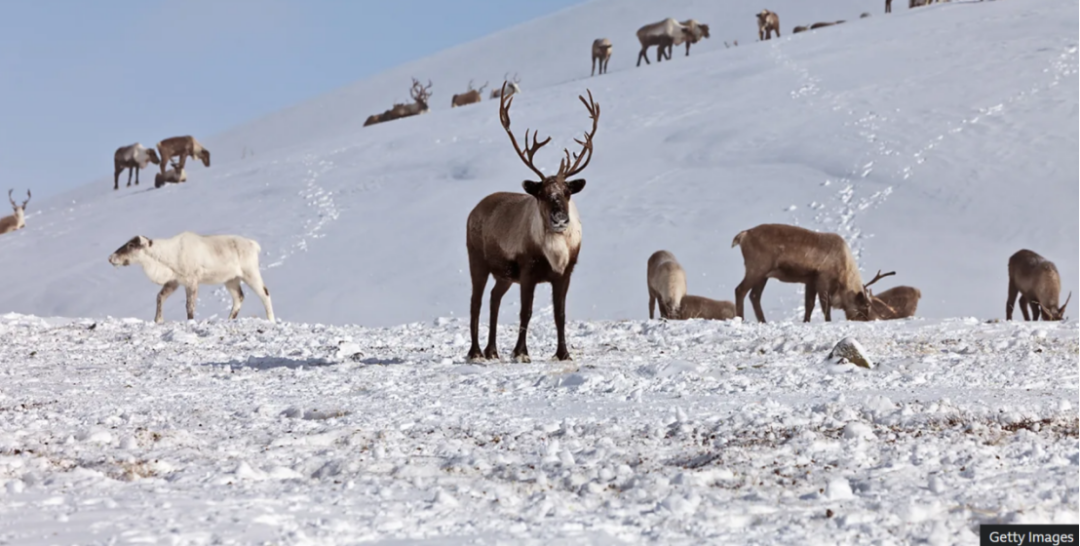 雪地中的驯鹿群