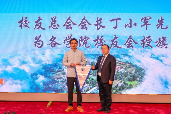 本网讯 2025年11月29日,即广外南国商学院30周年校庆倒计时一周年启动次日,学校东方语言文化学院、文化与传播学院、管理学院校友会成立大会,于 H 栋国际学术报告厅举行。大会由校校友总会主办,学校董事长、校友总会会长丁小军,校长王华等校院领导,地方校友会代表及师生代表齐聚现场,共同见证三大学院校友会揭牌。此次成立仪式既是校庆倒计时一周年系列活动的重要延续,也为母校联结校友资源、深化校地合作、助力高质量发展搭建了全新平台。
