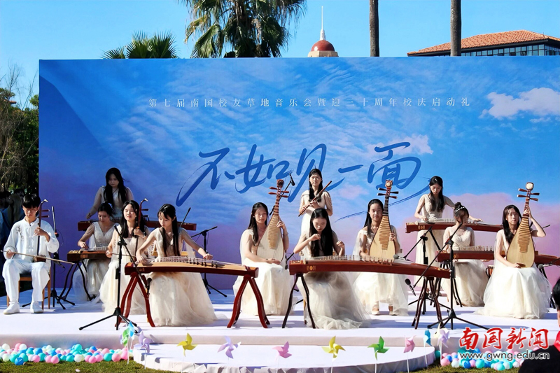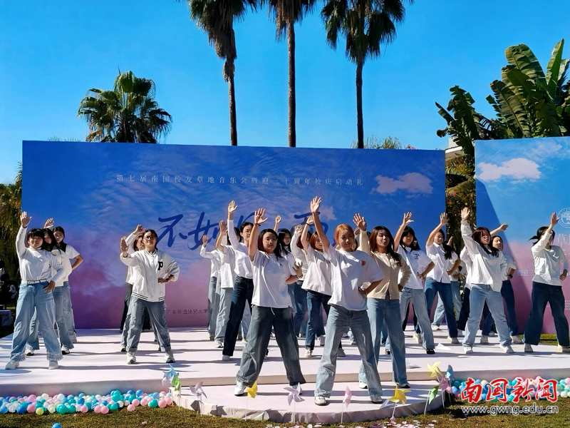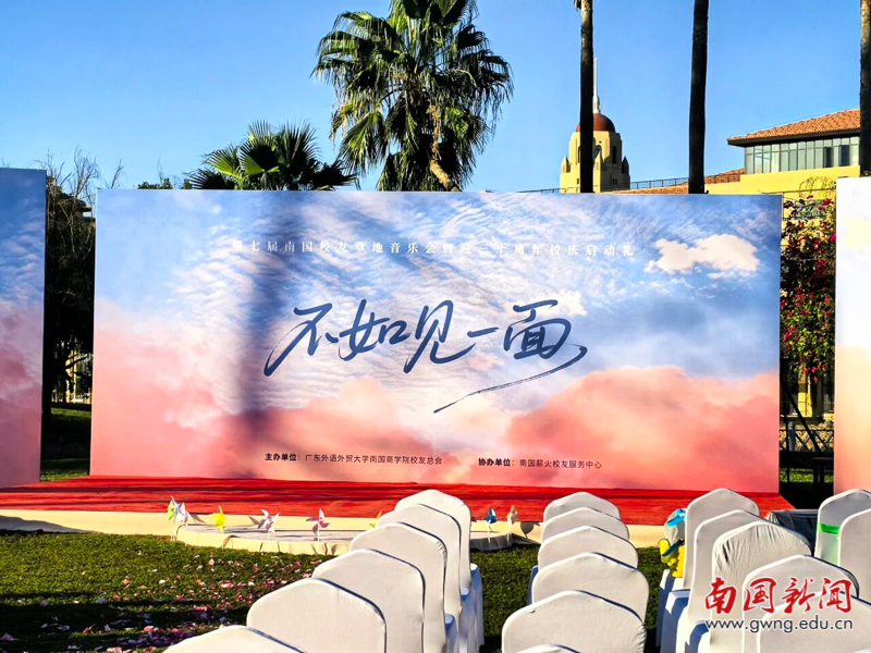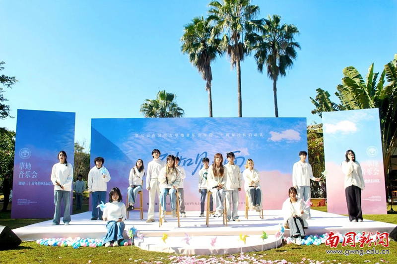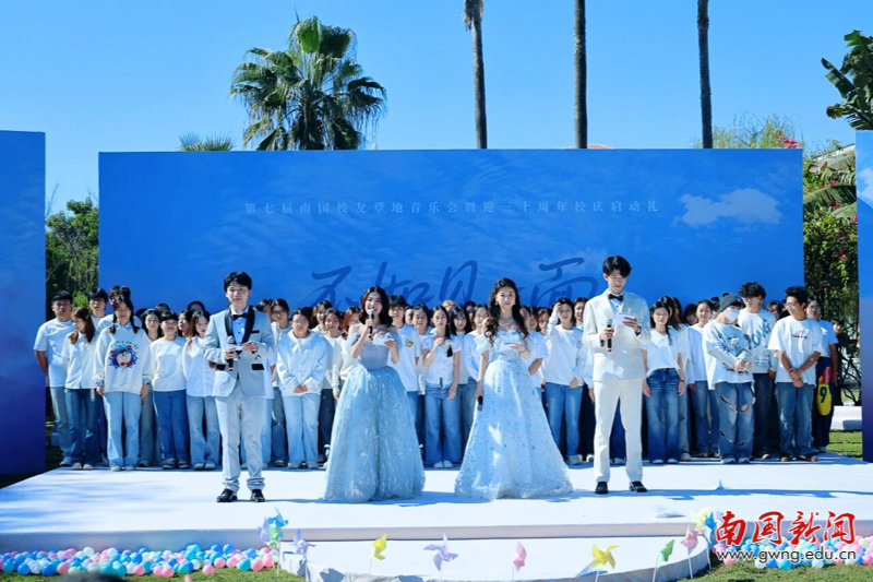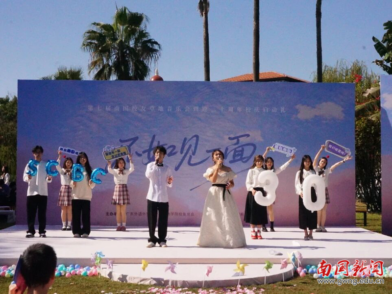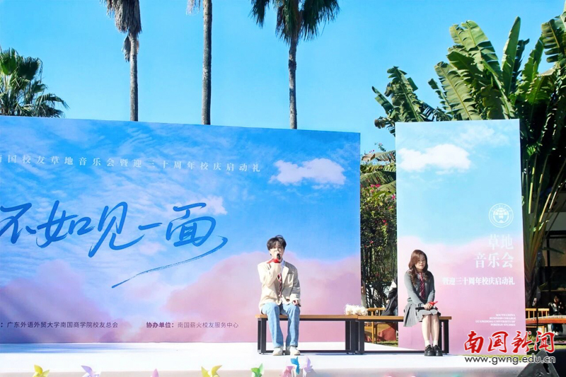 本网讯 11月29日,以“不如见一面”为主题的广东外语外贸大学南国商学院第七届校友草地音乐会暨三十周年校庆启动礼在薪火音乐草坪隆重举行。校友总会副会长赖志立、秘书长翁琳,2006级电子商务专业校友、深圳校友会会长杜硕忠等200余位校友重返母校,共赴这场充满温情与回忆的青春之约。