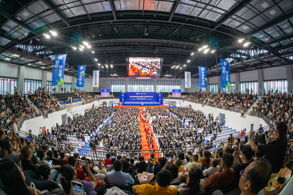 学校在新落成的体育馆内为2025届毕业生拨穗正冠
