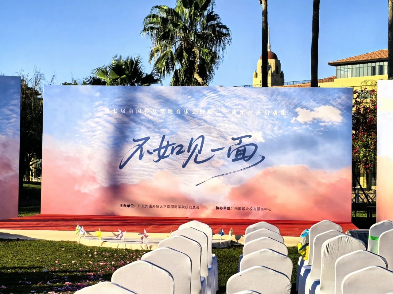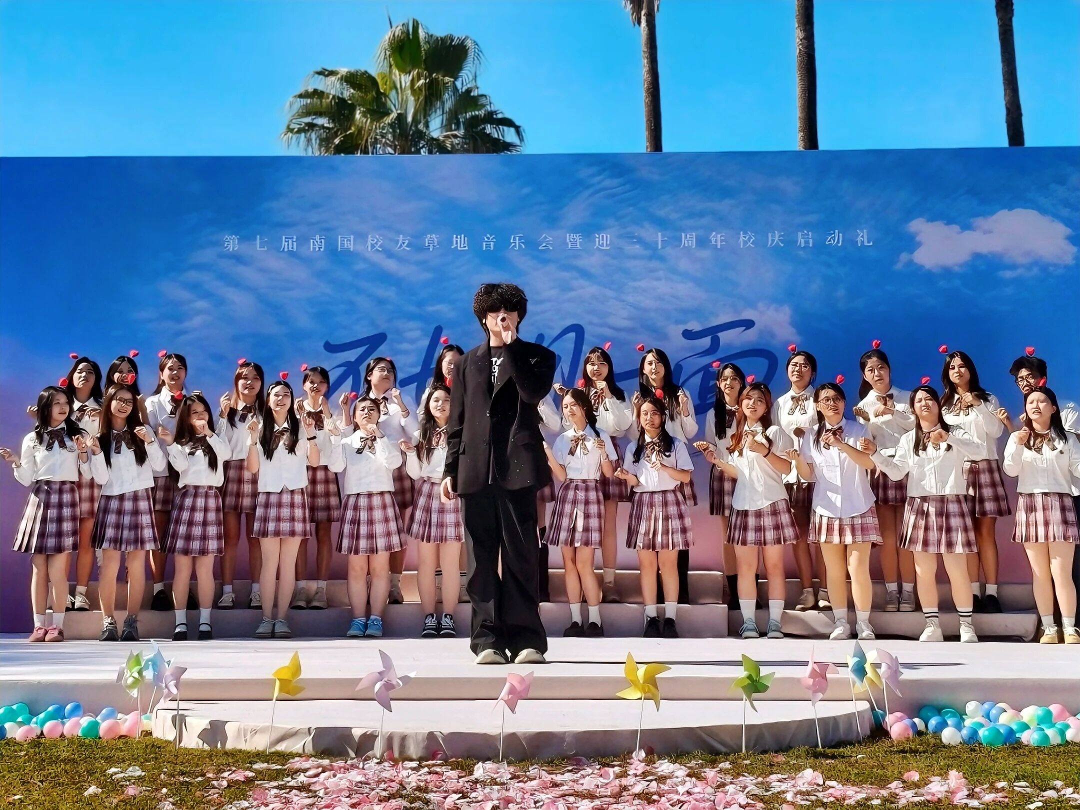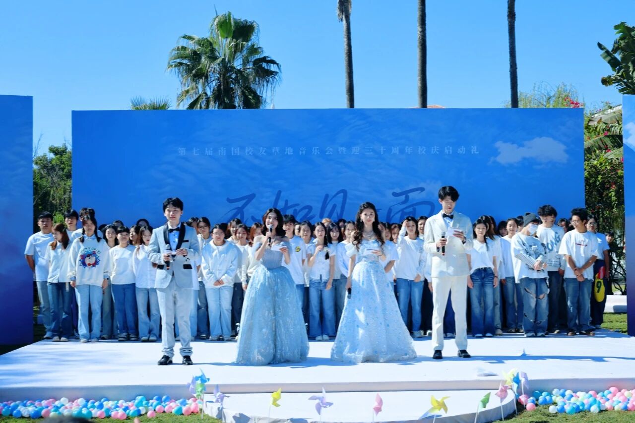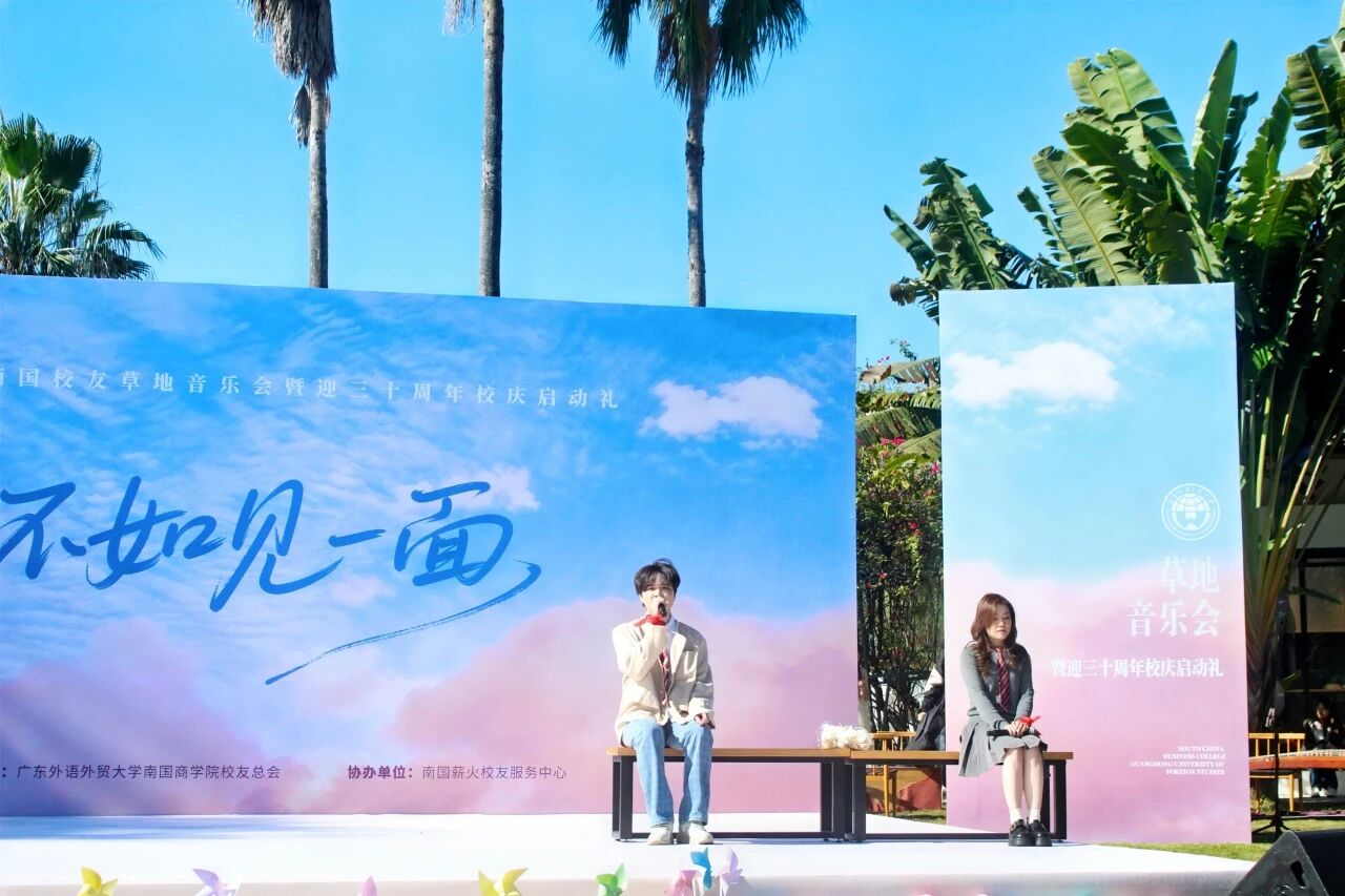 【本网讯】2025年11月29日,以“不如见一面”为主题的广东外语外贸大学南国商学院第七届校友草地音乐会暨迎三十周年校庆启动礼在薪火音乐草坪举行。校友总会副会长赖志立,校友总会秘书长翁琳,2006级电子商务专业校友、深圳校友会会长杜硕忠等200多位校友出席了本次音乐会。