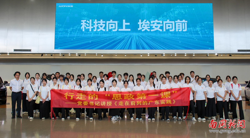 为深入学习贯彻习近平新时代中国特色社会主义思想,生动展现“走在前列的广东实践”的磅礴伟力,1016日下午,一场别开生面的“思政第一课”在广汽埃安新能源汽车股份有限公司以下简称“广汽埃安”)的生产一线开讲。学校党委书记许志超副校长福春马克思主义学院老师、团委老师及学校“青马”学员60余人,走进这家全球新能源汽车的领军企业,开展沉浸式实践教学