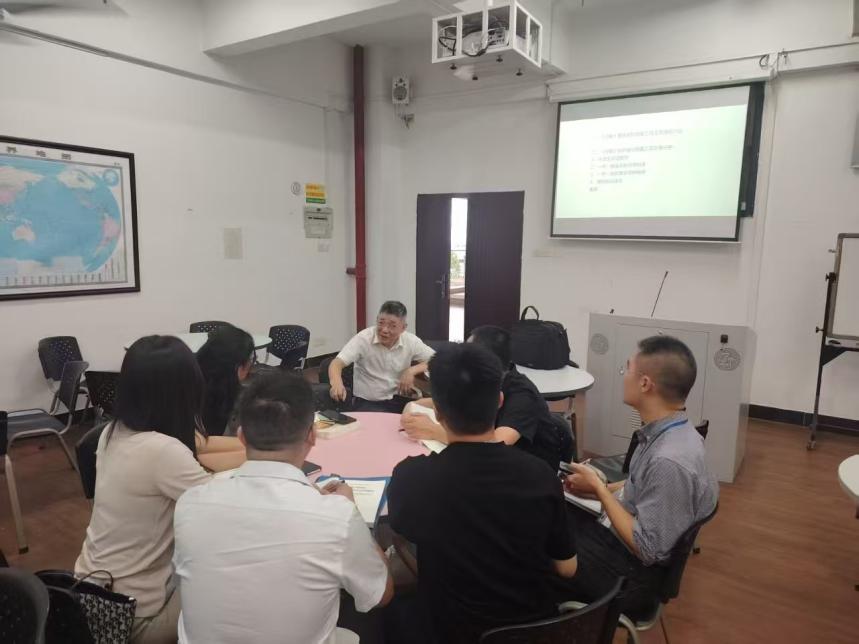 随后,深耕马克思主义理论研究数十载的詹文都教授分享教学经验。作为深受学生认可的资深教师,詹教授擅长将抽象的理论知识融入鲜活的家国叙事,让思政课堂兼具深度与温度。他强调,上好思政课的核心在于“坚定信念、守住底线”:一方面,思政课教师需从内心笃定马克思主义的价值追求与理想目标,以高度的责任感担当起立德树人使命;另一方面,要严守师德师风红线,时刻绷紧思政课堂的政治纪律之弦,确保教学方向不偏、育人底色不变。此外,詹教授还针对马克思主义理论课程如何平衡“全面覆盖”与“重点突出” 的关系提出具体建议,为教师优化教学内容提供了宝贵思路。