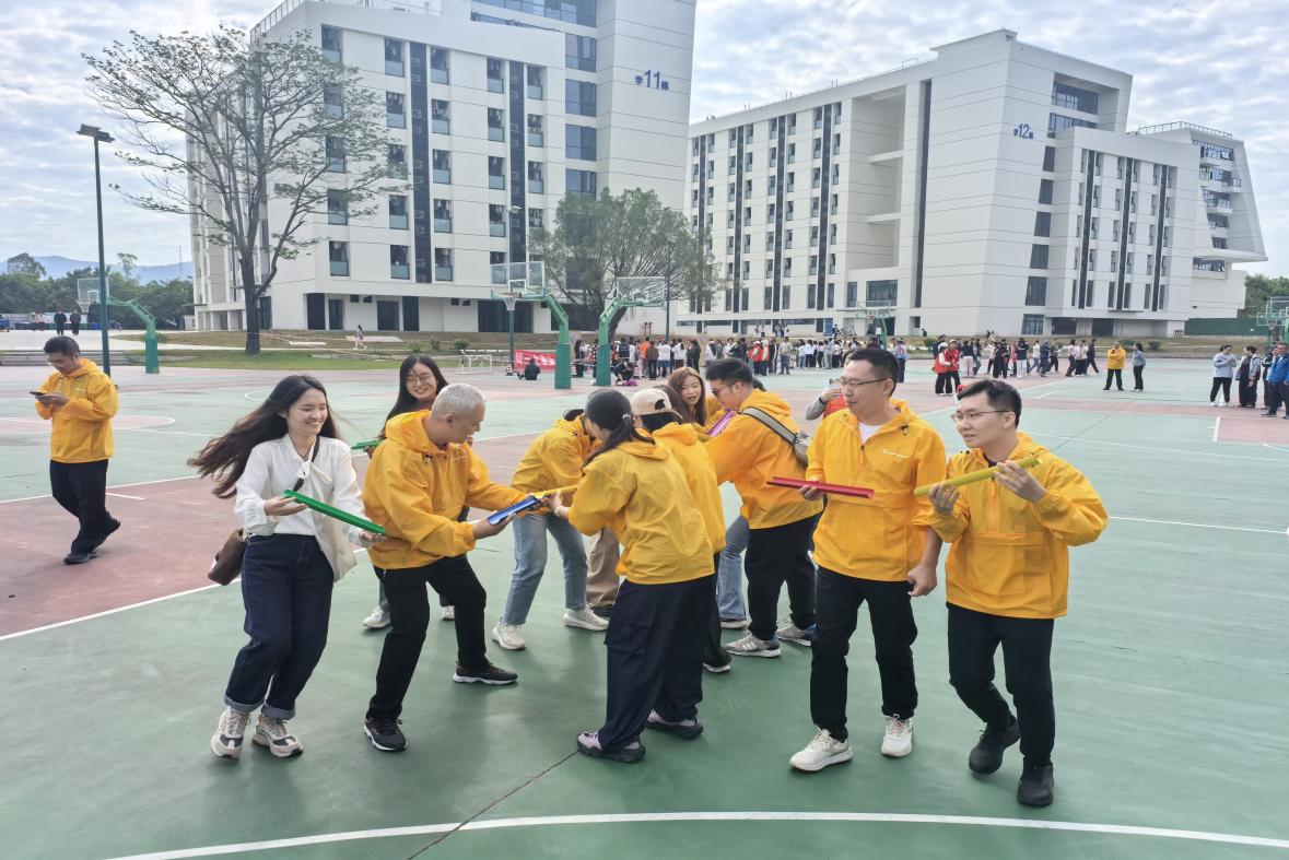 在教工组比赛中,学院教师积极参与、全情投入。无论是注重技巧与配合的“鸳鸯背瓜”“珠行万里”,还是考验耐力与节奏的“趣味跳绳”“呼啦圈”,或是展现速度与激情的“4×100米混合接力”“迎面接力”,我院教师均展现出高度的团队协作精神和顽强拼搏的意志品质。特别是在集体项目中,教师们默契配合、彼此鼓励,将赛场变为又一思政实践课堂,用行动诠释了“健康第一、立德树人”的教育理念。