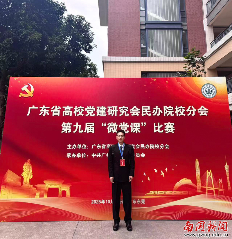近日,广东省高校党建研究会民办院校分会第九届“微党课”比赛获奖结果公布。本次比赛汇聚全省50所民办高校的优秀教师同台竞技,竞争激烈、含金量高。最终评选出一等奖5名、二等奖7名、三等奖13名。我院青年教师党员许家福凭借扎实的理论功底和出色的现场表现,在众多选手中脱颖而出,最终荣获二等奖。