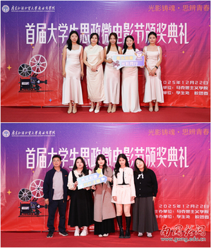 学生镜头下的思政课“活”了起来,教学成果变得真切可感。1222日晚,学院首届“光影铸魂·思辨青春”思政微电影节颁奖典礼暨教学成果可视化展演在F101报告厅举行。活动由马克思主义学院主办,学生处、校团委协办,通过红毯仪式与优秀作品展映,集中呈现了思政课教学改革的创新成果。校党委书记许志超、副校长赵福春等出席典礼,与师生代表共同见证了思政育人的鲜活时刻。