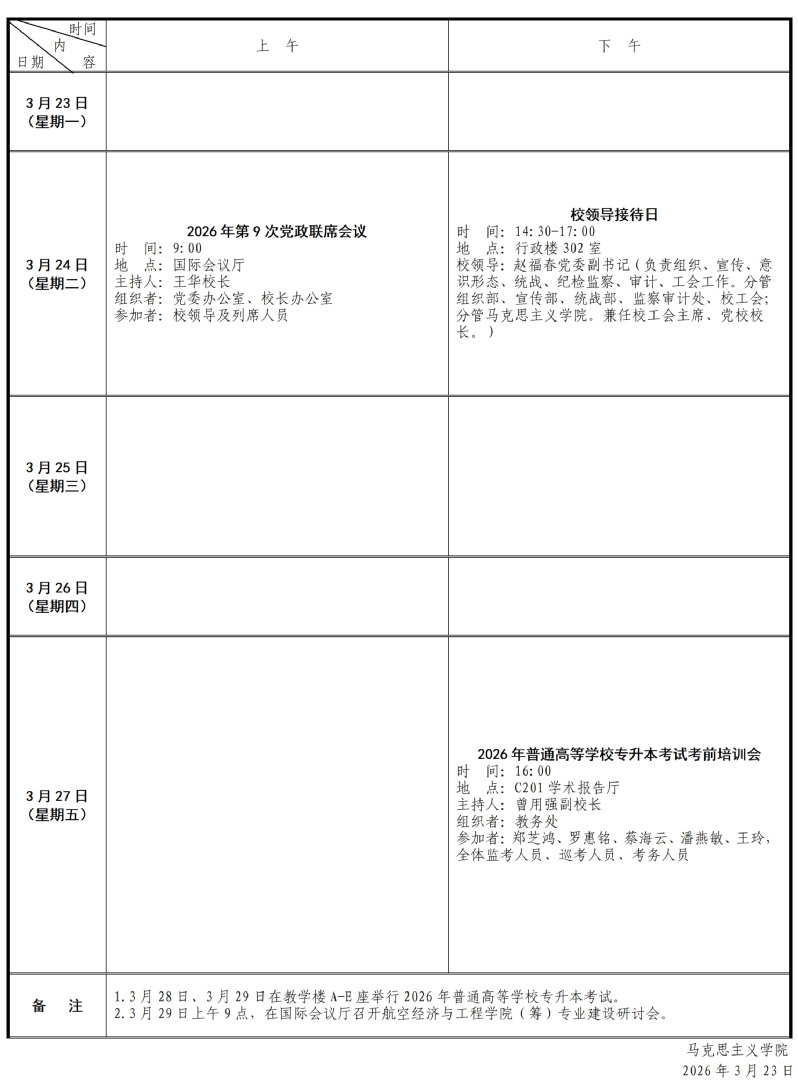 2026年春季学期第4周会议和活动安排表