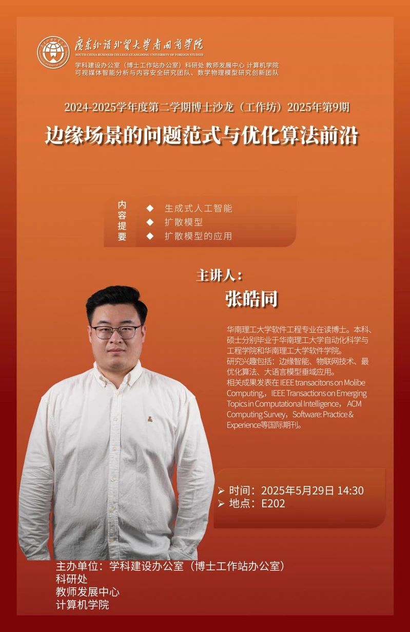 【博士沙龙信息】2024-2025学年度第二学期博士沙龙(工作坊)计算机学院