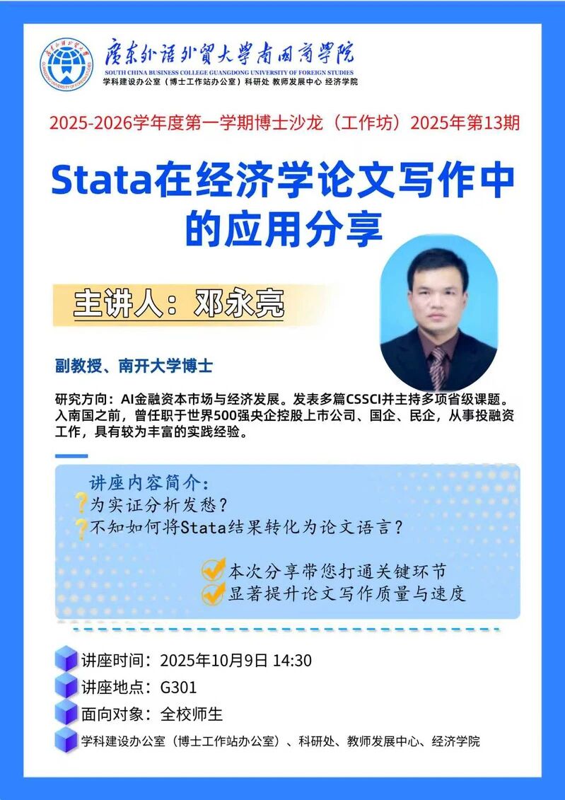 【博士沙龙信息】博士沙龙(工作坊)经济学院2025年第13期