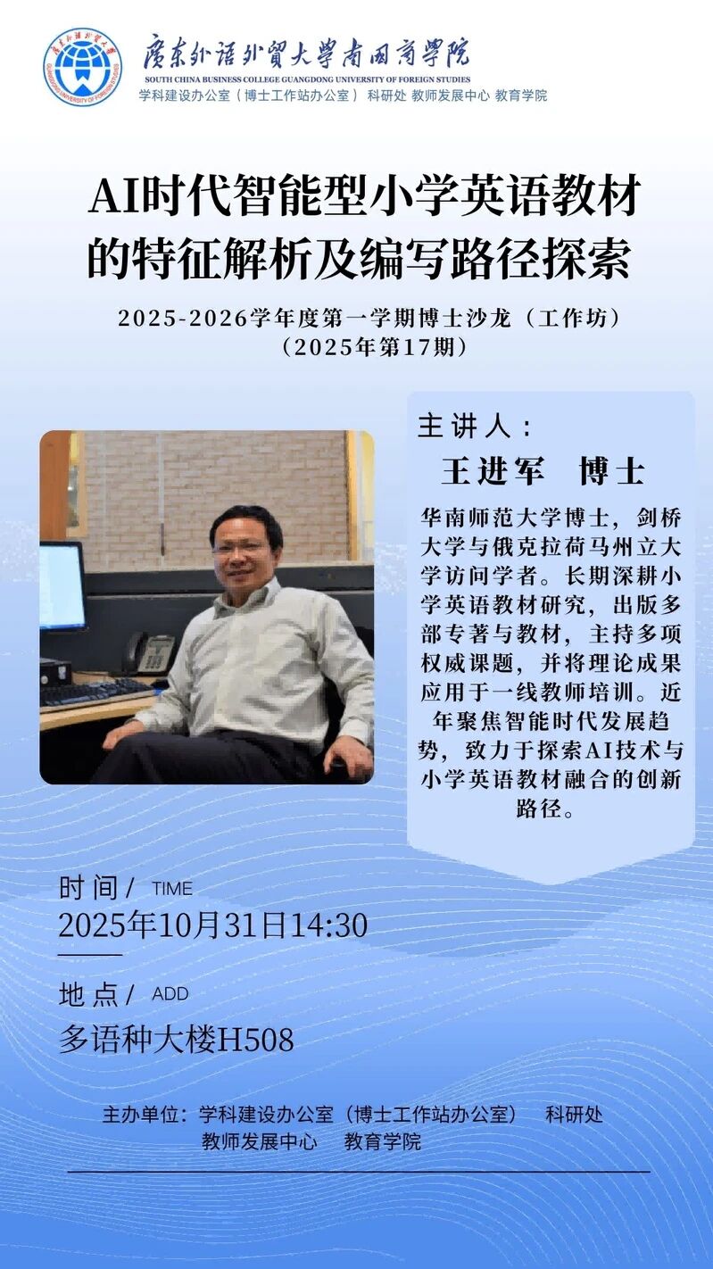 【博士沙龙信息】 2025-2026学年度第一学期博士沙龙(工作坊)教育学院(2025年第17期)