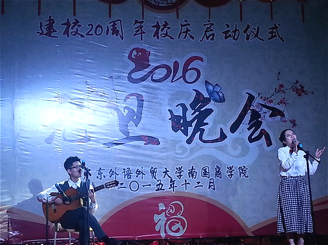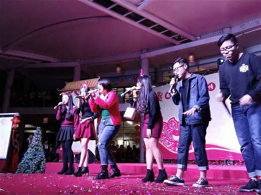 本网讯12月24日晚我校2016年元旦晚会在商业街拉开帷幕。党委书记黎冬,副校长杨永强,赖志立,熊匡汉和来自东莞,佛山,阳江的校友出席了本次晚会。