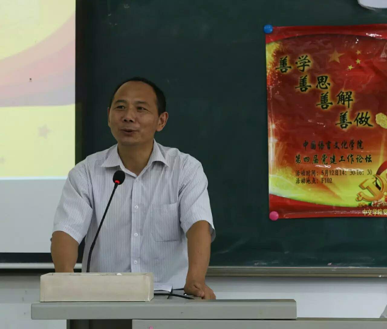 全体参会人员起立奏唱国歌,拉开第四届党建工作论坛序幕。首先,我院党总支书记吴锦德发表讲话,他表示党建的工作要和社会性质、就业创业等方面结合起来。反腐等政策、就业形式、国际形势等给经济造成一定影响,这些影响看似与我们关联不大,但其实都是密切相关的。并提出我们应该关心国家重大事件和社会形势;从身边小事做起,提高自身的综合素质;要实实在在爱岗敬业,学生要重视学习,以学习为主。除此之外,我院党总支书记吴锦德还以自己正在上大学的孩子作为例子,讲诉了他平时如何教育他。他谈到,平时在与孩子通话时,第一是关心孩子是否安全;第二就是孩子的心理健康,在学校有没有和同学友好相处;第三是关系孩子的学习情况;第四是关心孩子是否积极参加活动,培养综合素质能力。并由此引申出中文学院是语言学院,在平时的学习中,应该重视听说读写,但在上次毕业生论文答辩会上不禁为有些同学捏一把汗,有些同学明明准备得很充分,但说话的时候,因没有胆量,说话的层级、逻辑有些混乱;但也有很多同学准备充分,发挥得也好的。他还表示,希望我们平时能够练习写一手好字,包括钢笔字、粉笔字等,正所谓字好一半分。最后,他提出我们应该认真学习党章,保持党的先进性。