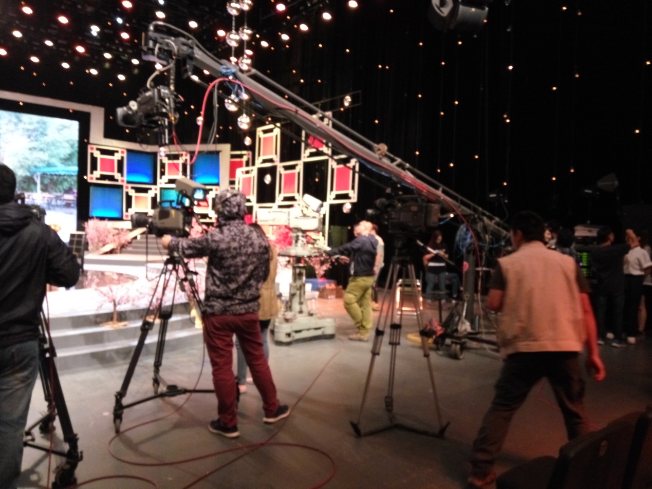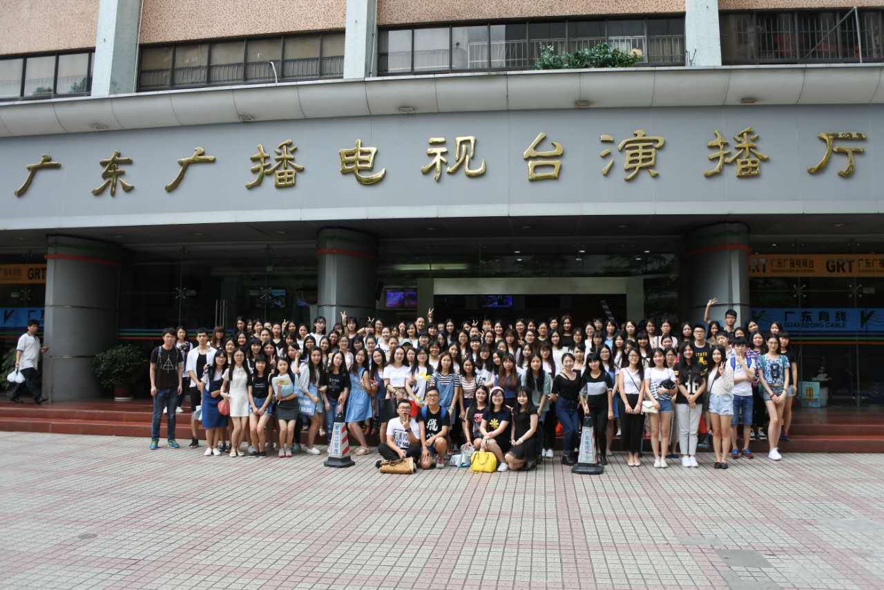 本网讯 近日,中国语言文化学院13级学子在广播电视学概论任课教师谭红云的带领下,一同前往广东广播电视演播中心进行实践课程的学习,以观众的身份参与广东电视台珠江频道栏目《粤韵风华》的现场录制。