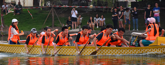 本网讯 6月1日15时50分,第六届龙舟赛预赛在商业街湖畔正式拉开帷幕,全校共有9支教职工队伍以及21支学生队伍参加本次比赛,比赛分别设有男子组、女子组、教职工组以及男女混合组。我院教职工和四十多名学生代表中文学院光荣出战,并取得不错的成绩。