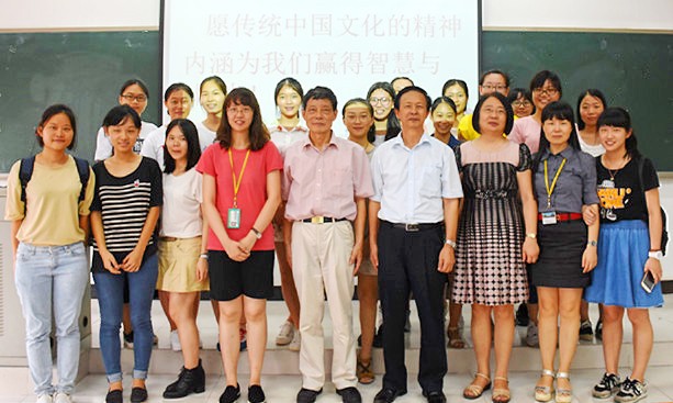 本网讯 6月23日下午,由中国语言文化学院院长柯汉琳主持的“人文——审美教育”系列讲座之中国传统文化精神的启迪在F302开讲,主讲人为中国语言文化学院的伍巍教授,中文学院院长柯汉琳,院长助理周文,徐琼教授,谢志平博士,周欣茵老师作为嘉宾出席本次讲座。