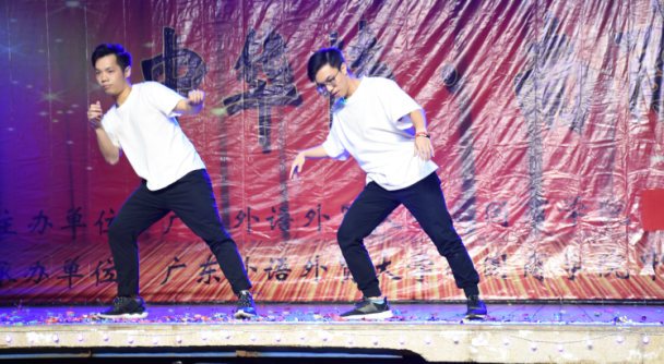 除了传统文化的展示,极具青春活力的街舞表演《scream》,带给观众不一样的感受。街舞表演需要身体的协调性,在充满节奏感的音乐声中,两名身穿白色衬衫的街舞社员用肢体在地上踩出复杂变化的脚步动作,表现年轻人青春张扬的一面,将全场的气氛推向高潮。