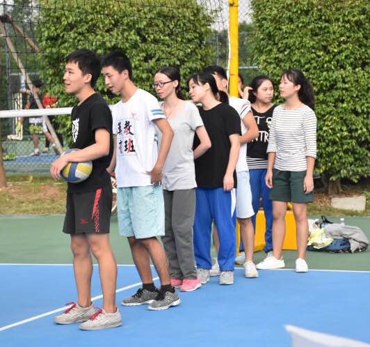 今天空气中氤氲着丝丝凉意,下午阳光甚好,正是比赛的好天气。赛前,双方的球员都做了充分的热身。比赛初始,中文学院球员率先赢得一球。我院球员一鼓作气,打出了20:0的好成绩。就在这样的节奏下,第一局比赛以25:5结束。