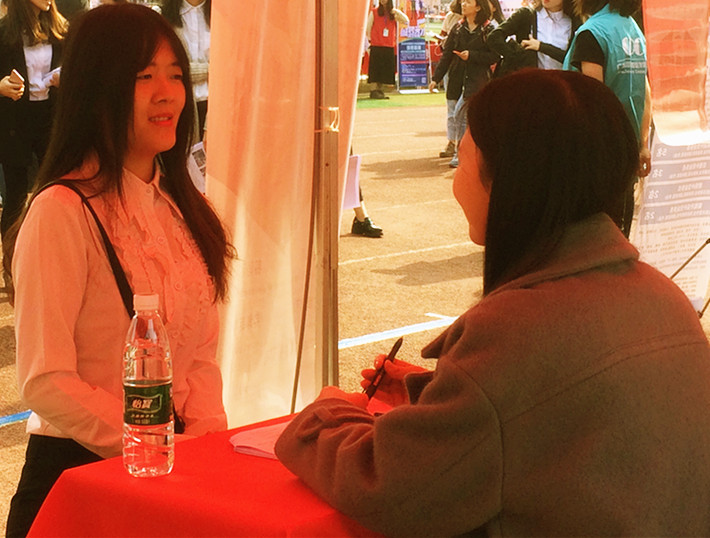 据了解,本次招聘会开设了与我院各专业相对口的就业岗位,例如文案策划专员,储备语文教师以及语文教师等。此外,记者还了解到,今年我院毕业生应聘的企业大部分都为教育类,如华南地区最大的中小学课外教育机构——卓越教育机构。记者采访到了一位正在卓越教育机构招聘摊位前排队等候面试的学生,她表示,自己应聘的职位是教师类,因此事先准备好了与此相关的个人简历,而且对接下来的面试也做足准备。她还告诉记者,这是她今天投的第二份简历,虽然没能通过上一场面试,不过她很快调节好心态,自信面对接下来的面试。在采访过程中,记者发现有不少大三学生也参加了本次招聘会。他们表示,希望能够通过此次招聘会找到一份假期工作以锻炼自己,同时也为以后进入企业单位工作做好准备。在此次招聘会上,不少企业对学生的专业没有明确要求,因此我院也有不少同学尝试着去面试其他类型的工作职位,这也切合了当今社会人才不拘于一个专业方向发展的情形,同时毕业生也能获得更多的就业机会。
