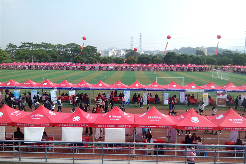 本网讯 12月2号上午,由广东省教育厅主办、广东外语外贸大学南国商学院承办的2017届高校毕业生就业供需见面会(从化地区)在我校田径运动场举行。参加本次招聘会的企业包括有汇丰环球、华润怡宝、环球易购等250多家。前来应聘除了我校应届毕业生还有其他高校2017届毕业生。相较于去年,今年应聘人数相对较少。