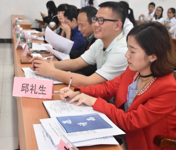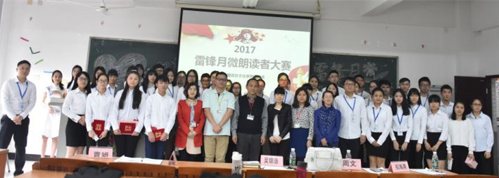 本网讯 3月23日下午,中国语言文化学院团总支在教学楼F303举办雷锋月微朗读大赛。我院党总支书记吴锦德、院长助理周文、汉语国际教育系主任冯薇、行政秘书招海燕,以及东方语言文化学院辅导员邱礼生、曹妍应邀担任嘉宾。
