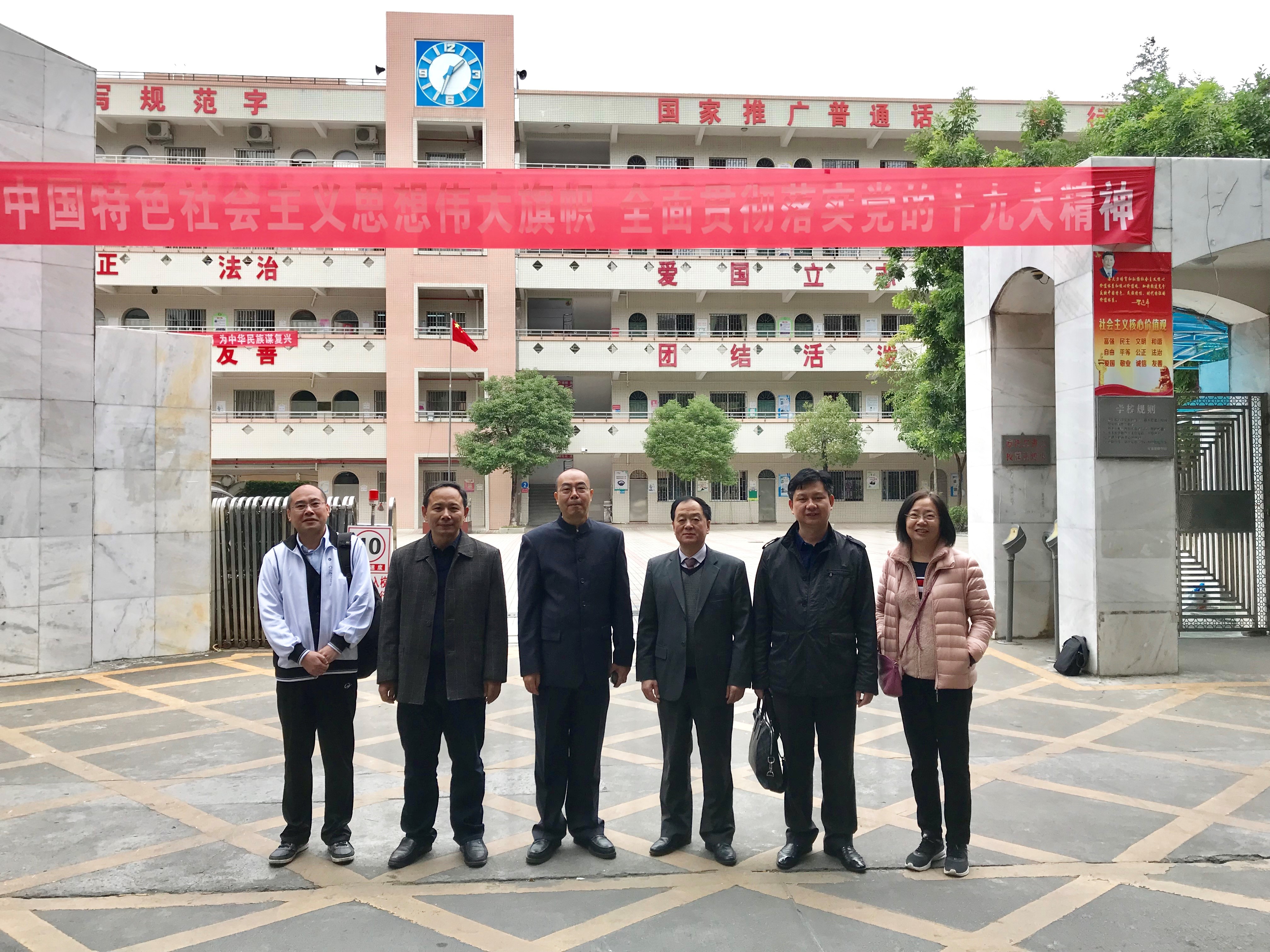 我校领导、老师与石龙镇宣传教育文体局局长段平凡在石龙二中合影