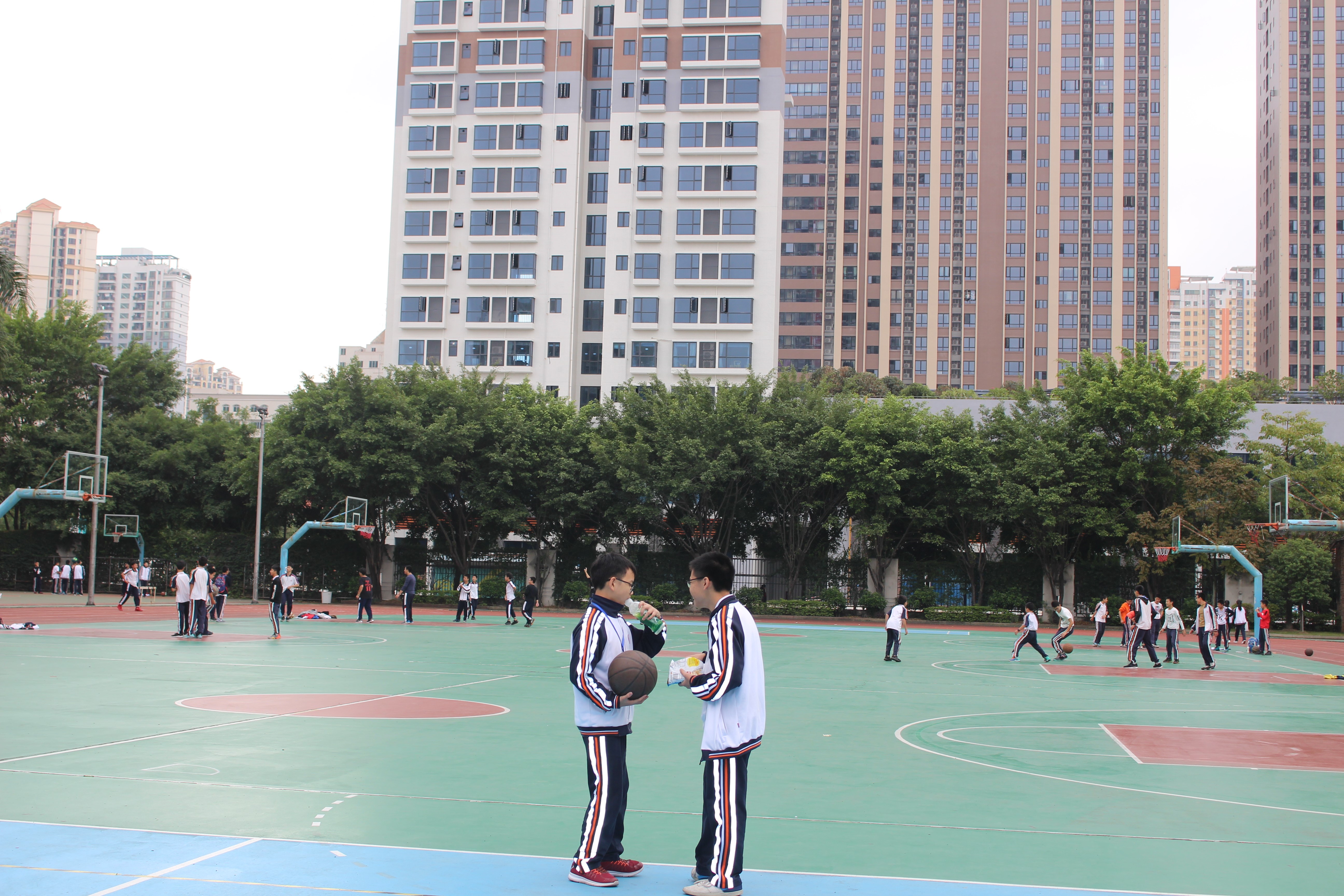 午饭过后,石龙二中的学生在篮球场上玩耍