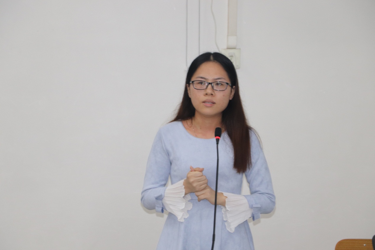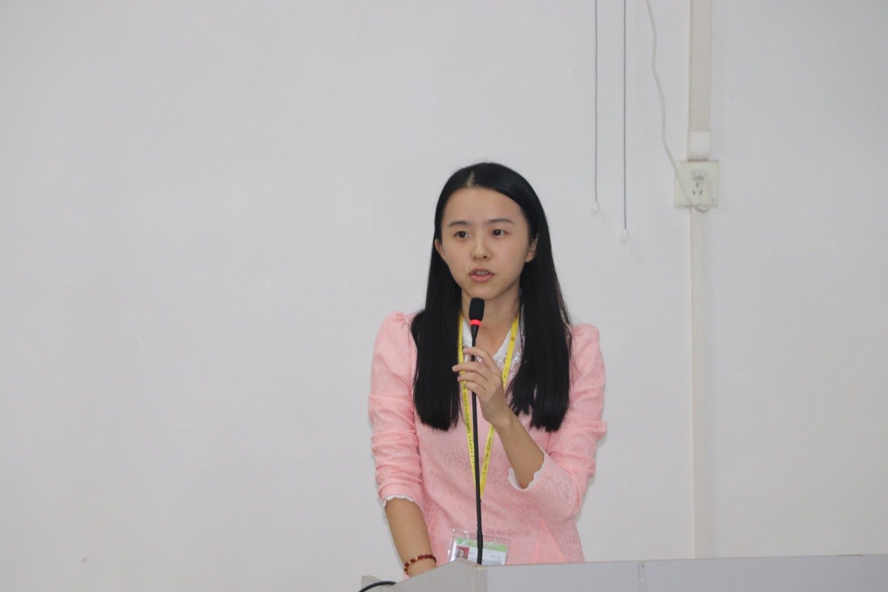 14级汉语国际教育的陈蔓萍师姐上台分享(廖梓铃 摄)