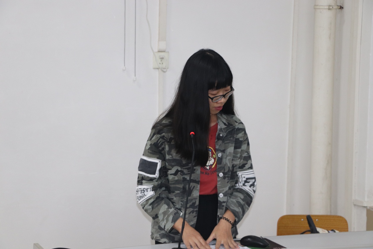 16级应用语言学专业的劳泳媚上台分享(廖梓铃 摄)