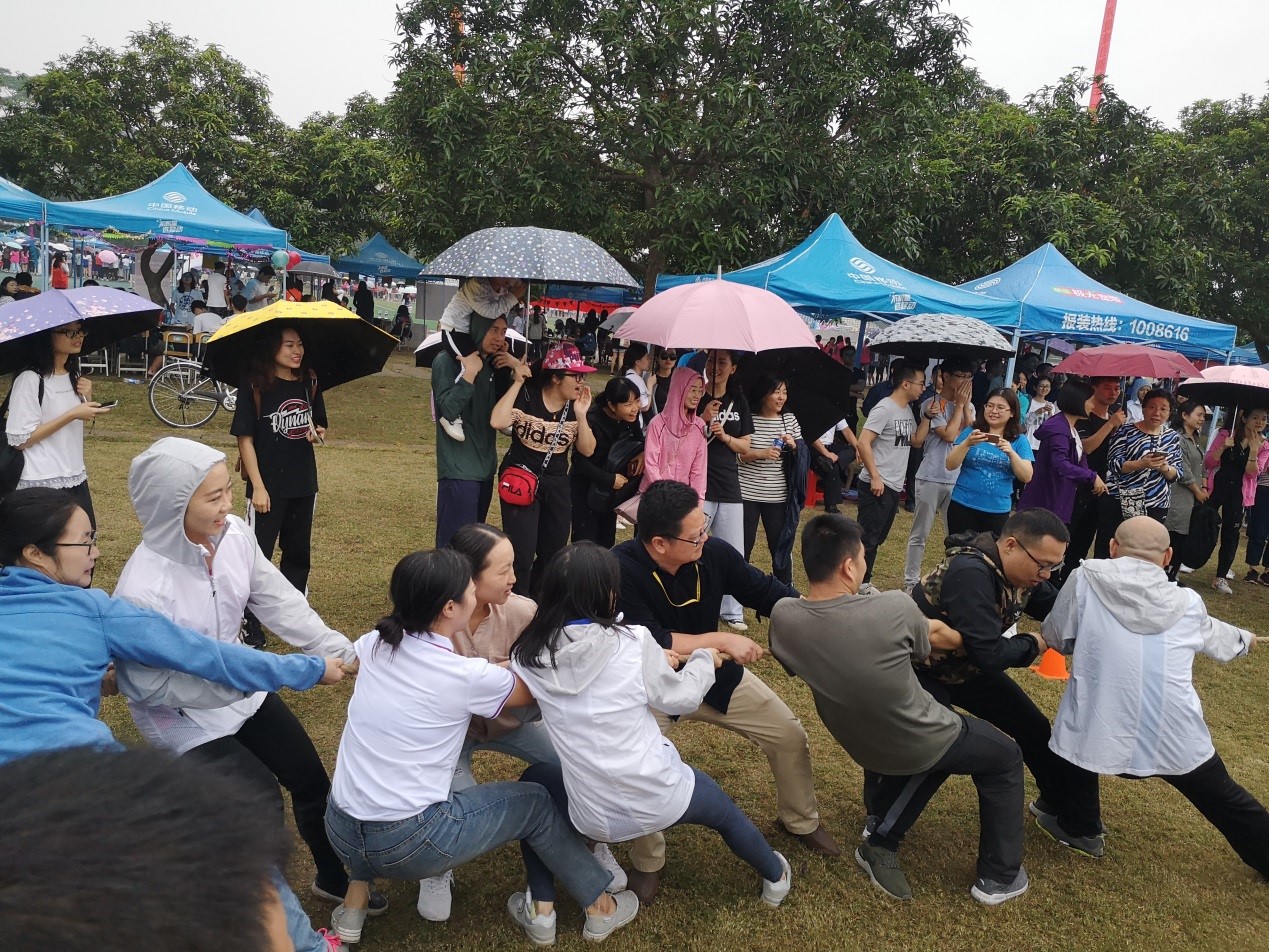 11月15日下午和16日上午,校运会教工组“力拔山河”拔河比赛预赛和决赛分别在运动场旁边的草地上举行。比赛分为四场,其中,中文教育工会与信科工会的老师们一起对抗英语工会和后勤二工会的老师们。随着比赛的裁判一声哨响,中文学院与信科学院的老师团结协作,同时发力,一起紧握长绳,一个个手挨着手,脚顶着脚,身体后仰,奋力地拔着绳子。
