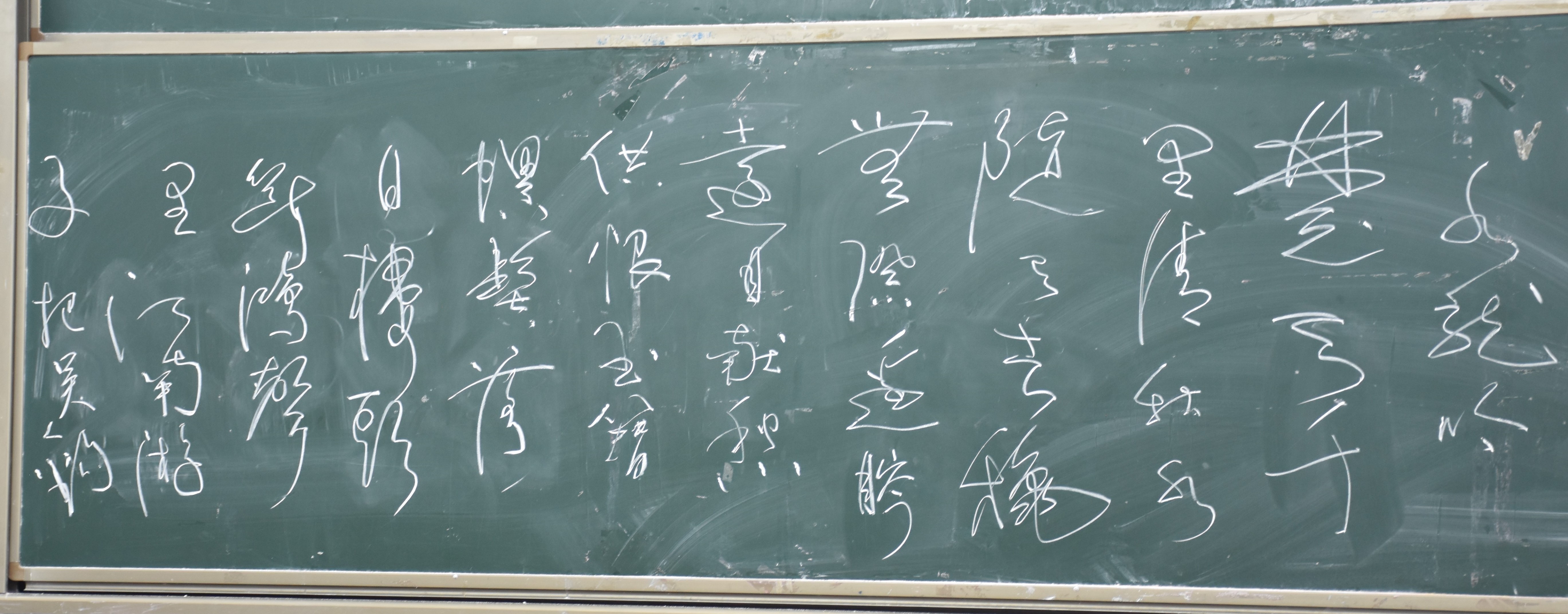 高雄飞教授在这节课中给学生讲解了草书的书写特点和方法。课程开始,高教授就介绍了草书虽然在生活中实用性不强,但它在书法艺术中有非凡的重要性。高教授还讲解了草书的法度化和规范化,他强调:草书的特点就是突破了楷书的法度化和规范化,但是草书非肆意妄为。草书既然作为书法就有自己的一套法度、规范,比如偏旁部首是相对稳定,有一套符号系统。乱写草书就会写成“丑书”,是“行为艺术”不是书法。随后高教授通过实践更深层地解释了草书的这一特点。最后,高教授总结:学习书法要先看别人怎么写,自己再模仿,多写几遍,进行对比,发现不同再改进和练习。