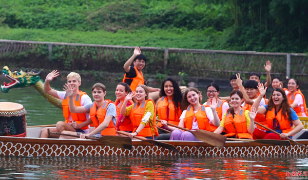 留学生参加划龙舟活动(曹婼喧摄 摄)
