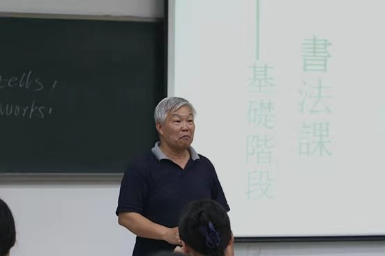本网讯 3月17号晚上,中国语言文化学院书法训练营在G504举行开营,毕业于广州美术学院书法专业的孔子心老师、中国语言文化学院院长王毅、副院长吴晟、党总支书记吴锦德出席了本次开营活动。