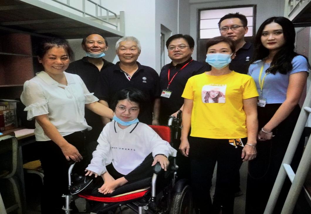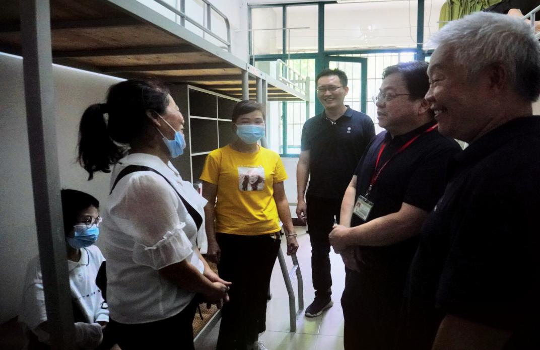 下午4点,学校副校长赖志立、中国语言文化学院院长王毅、党总书记吴锦德、2021级新生辅导员刘佳欣走访宿舍,看望新生。领导老师们第一时间去到了一位特殊学生的宿舍探望,她就是2021级汉语言文学专业的杨林江同学。