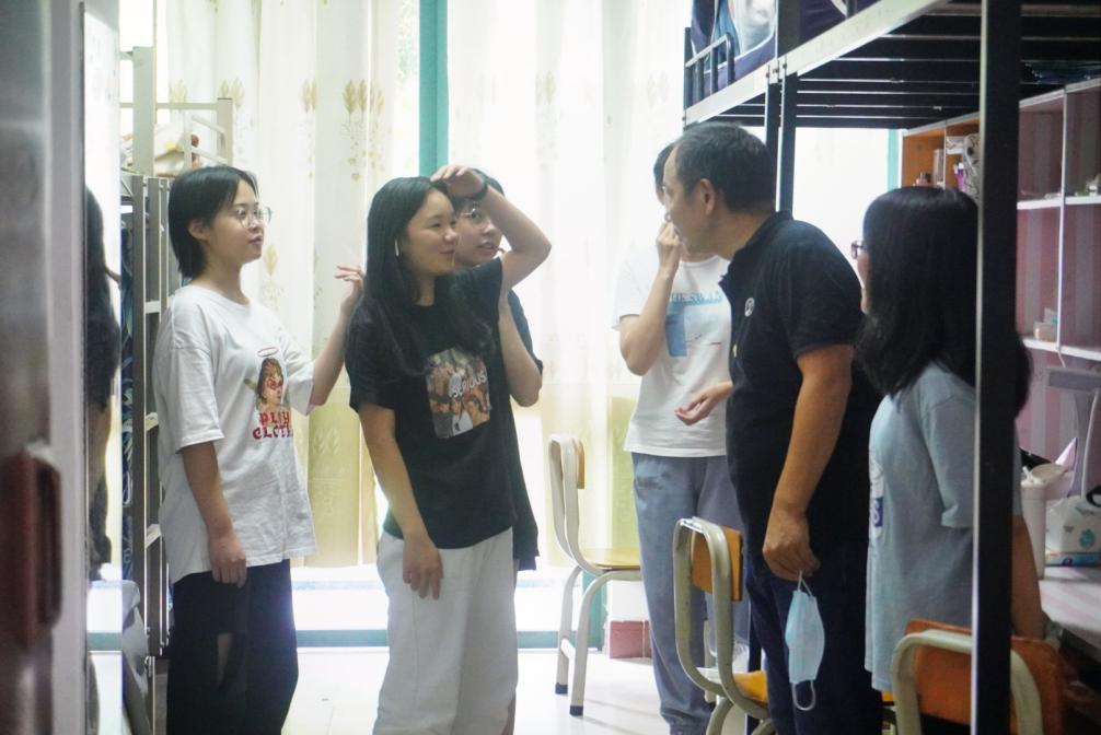 随后,老师们还去到了很多个新生宿舍进行亲切交流,询问新生们来自哪里,入学的感受,以及入住新的宿舍的适应情况等问题,老师们都由衷地希望同学们能够尽快地调整好自己的状态,从而更好地适应大学的生活节奏。随着老师与同学们的欢声笑语从宿舍中传出,我们感受到了中文学院这个大家庭的温暖与热情。