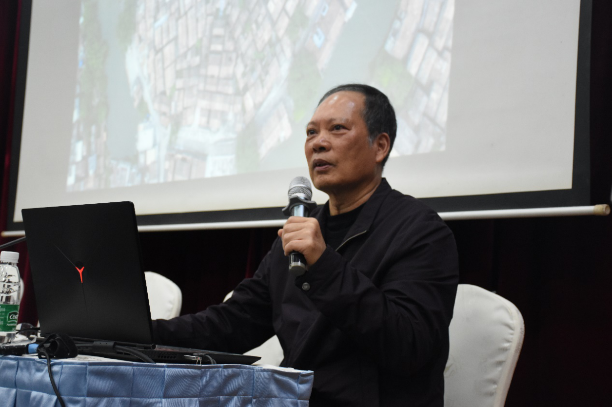 本网讯 11月24日下午,由中国语言文化学院举办的以“保护古村落文化,留住美丽乡愁”为主题的讲座在F101拉开帷幕。本次讲座由广东省古村落评审专家、文学博士黄伦生作为主讲人,由中国语言文化学院副院长吴晟主持,书记吴锦德出席讲座。
