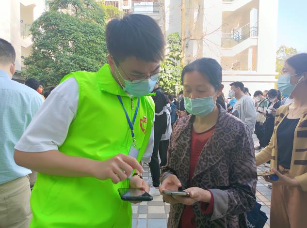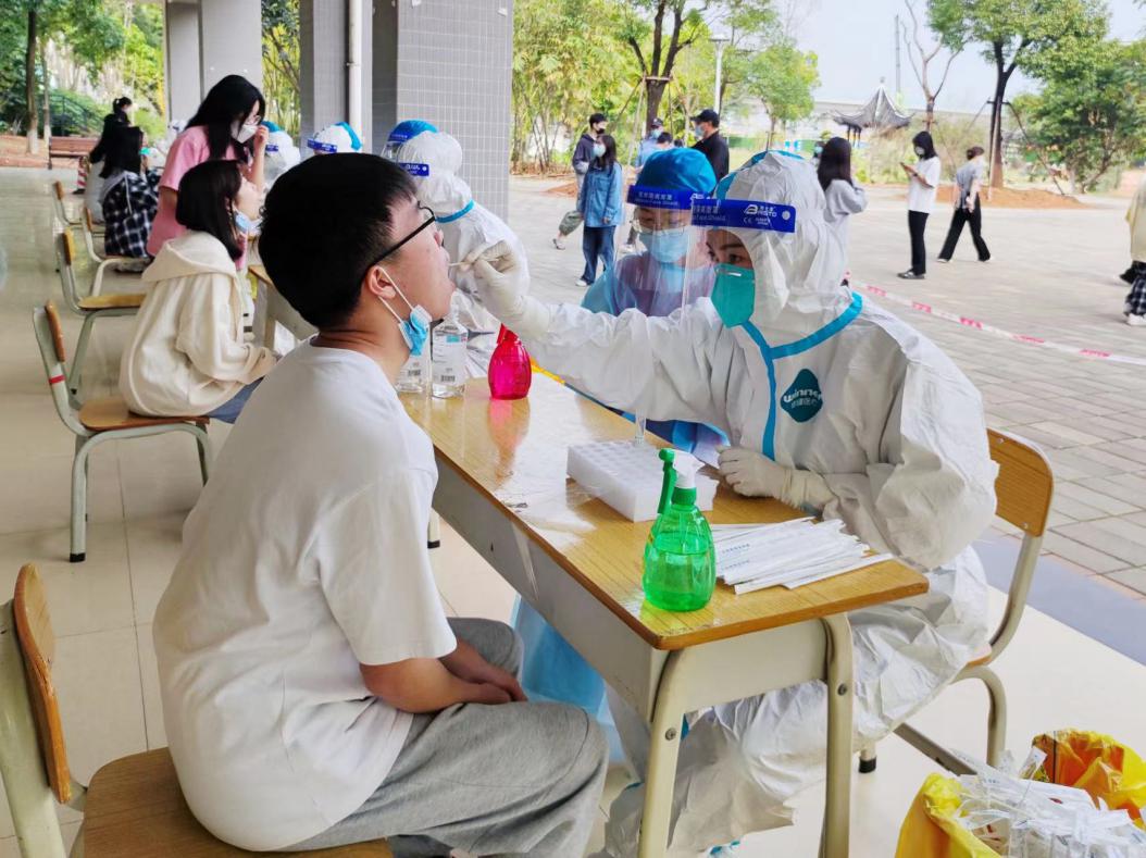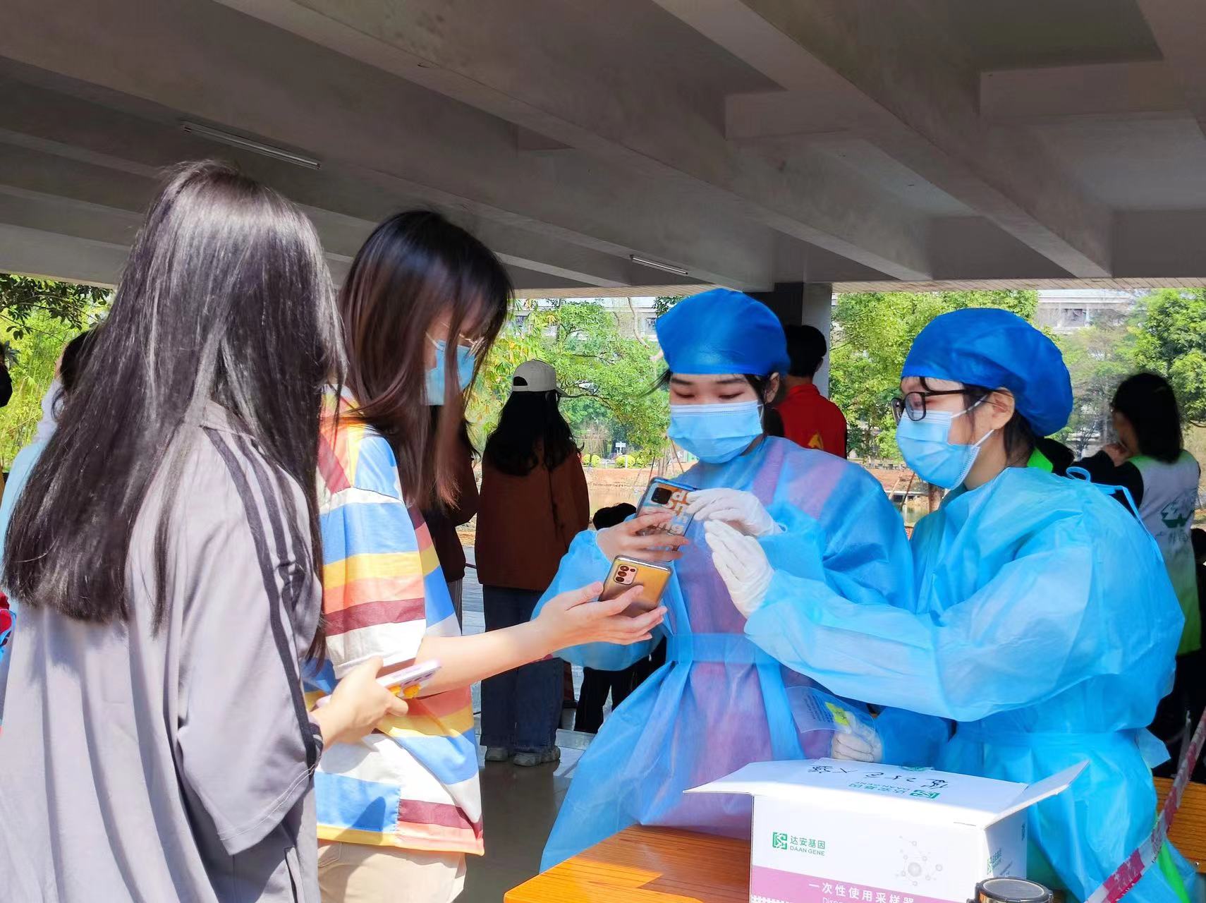 来着中文学院21汉语言文学2班的吴港锋同学,积极配合学校工作的安排,以志愿者身份投入三天两检的工作中,帮助展开核酸检测工作。感谢像吴同学这样在背后默默无闻的乐于奉献的同学。