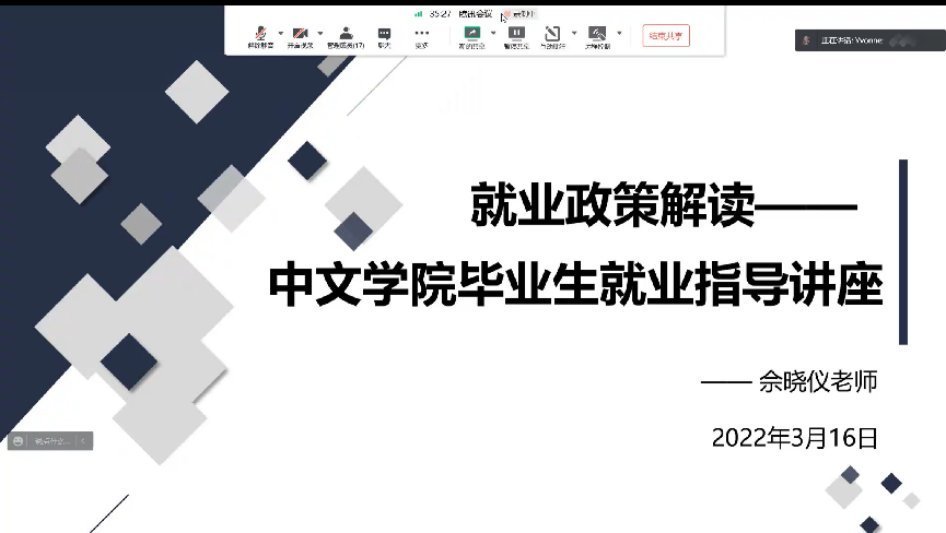 佘晓仪老师鼓励同学们抓住机会,结合自身感兴趣的方面,多去了解一些招聘岗位,积极投简历、参与线上招聘会,现在正值三、四月,是一个寻求就业的好时机,希望同学们都能够找到理想岗位。
