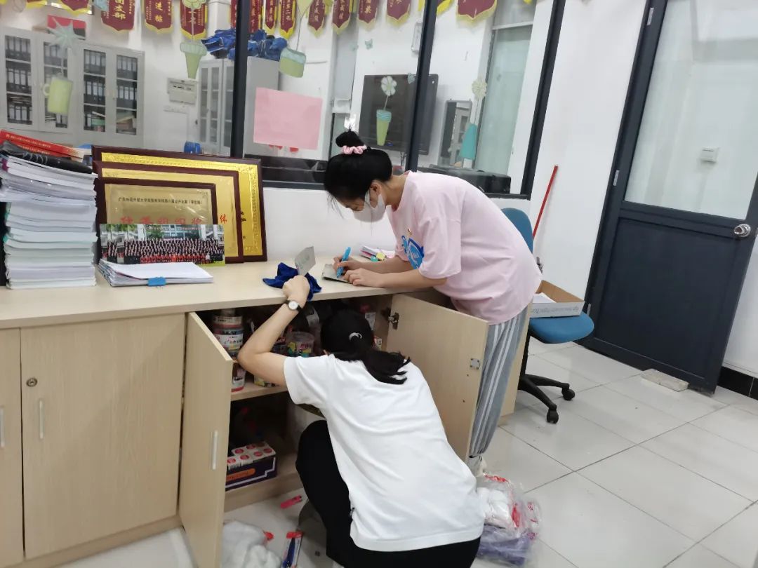 灿烂的阳光如同大家的热情,在各组长的带领下,他们相互配合,各司其职,让办公室以及宿舍楼变得焕然一新。虽然过程艰难,但是在完成工作后,每个人的脸上都洋溢着笑容,既让校园恢复本来干净的模样,又让大家体会到打扫卫生的不易,督促着大家更加爱护校园环境。