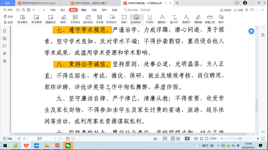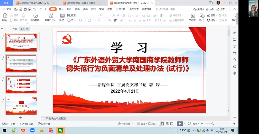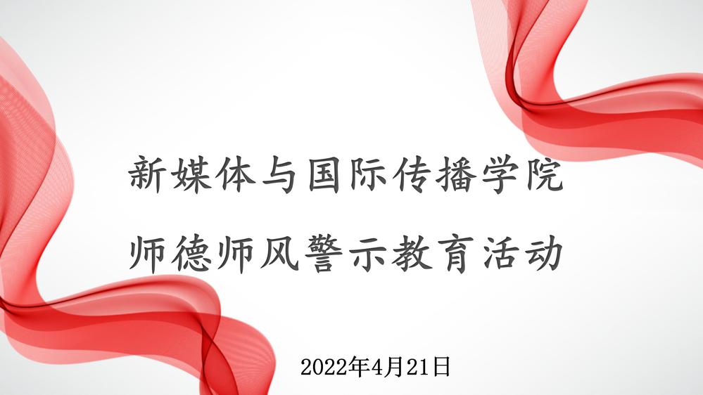 为进一步加强学院师德师风建设工作,规范和引导教师以德立身、以德立学、以德施教、以德育人,发挥典型案例警示作用,4月21日下午,新媒体与国际传播学院在线上开展师德师风警示教育活动。