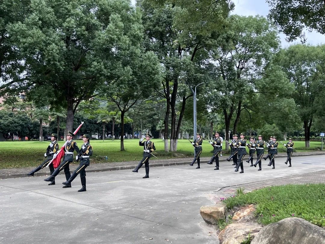 迎着清晨第一缕阳光,升国旗仪式正式开始。伴随着嘹亮的口号声,国旗护卫队挺胸阔步、精神抖擞地护卫着国旗走上升旗台。雄壮的《义勇军进行曲》响起,升旗手振臂一挥,鲜艳的五星红旗冉冉升起,在晨曦中迎风飘扬。全场师生肃穆而立,高唱国歌,面向国旗行注目礼。