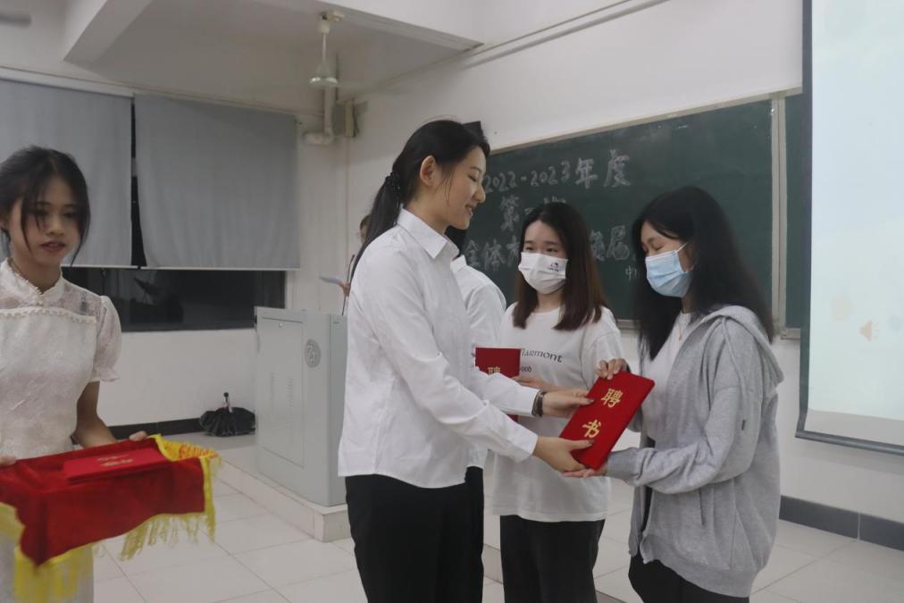 潘佳慧学姐为前部长们颁发聘书(陈茜/摄)