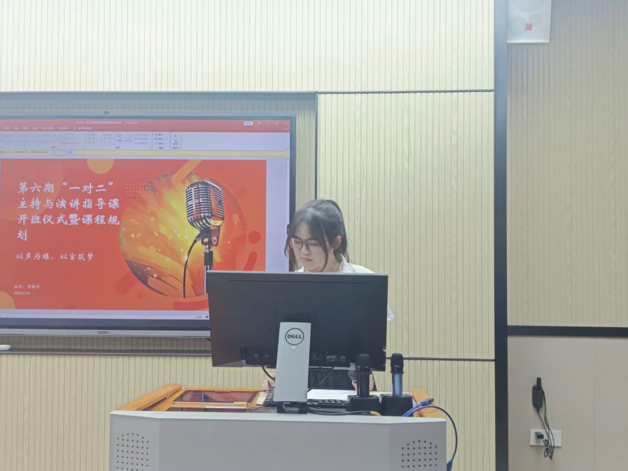 (主持与演讲组指导员黄韵芊介绍辅导内容和安排)