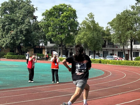 11 月 14 日上午,校运会女子 200 米决赛在运动场如期开赛。暖融阳光洒满赛道,几缕冷风相伴,却丝毫未减选手们的竞技热情。我院参赛选手邓雅琪同学提前到场热身,以饱满状态迎接赛事,蓄势待发。