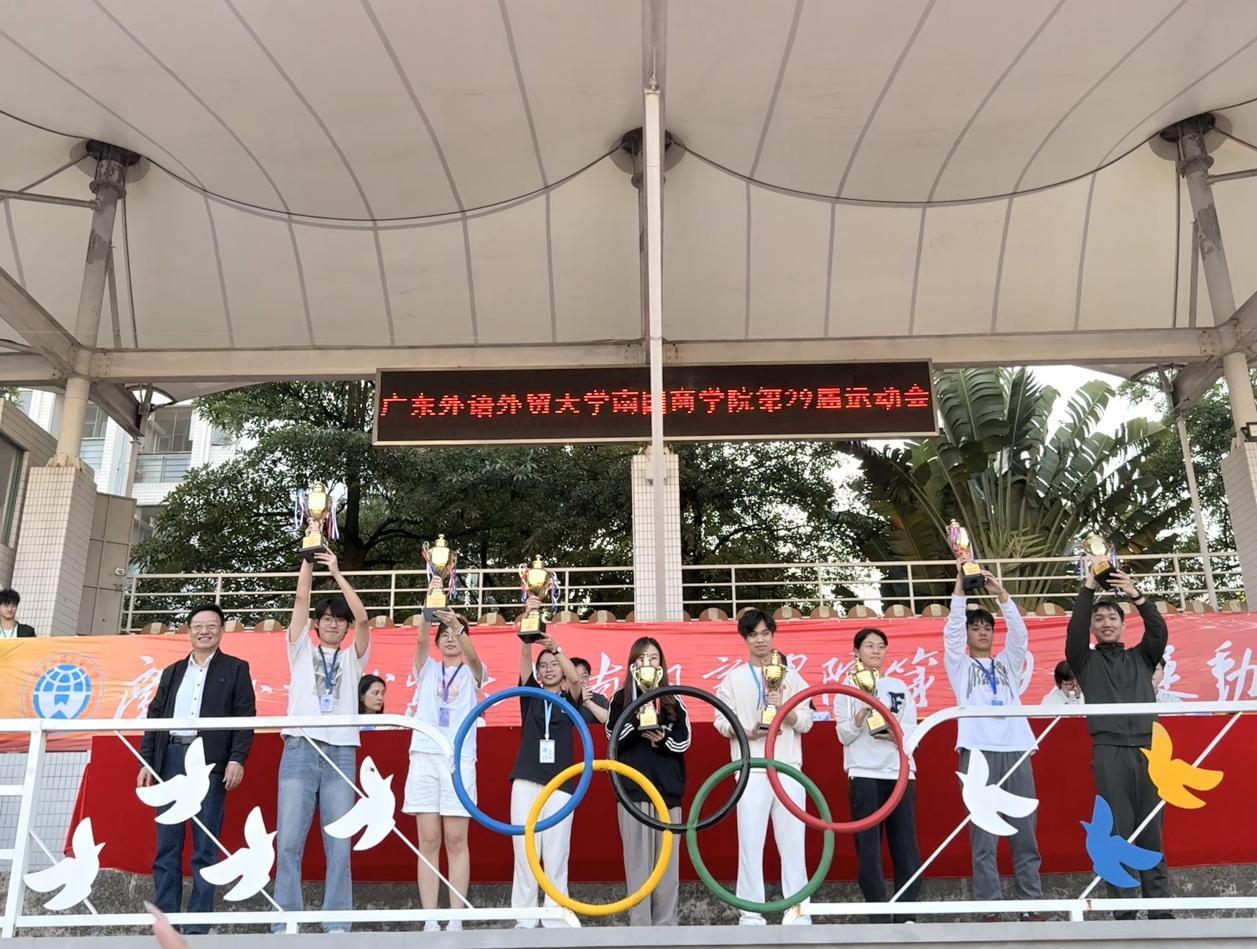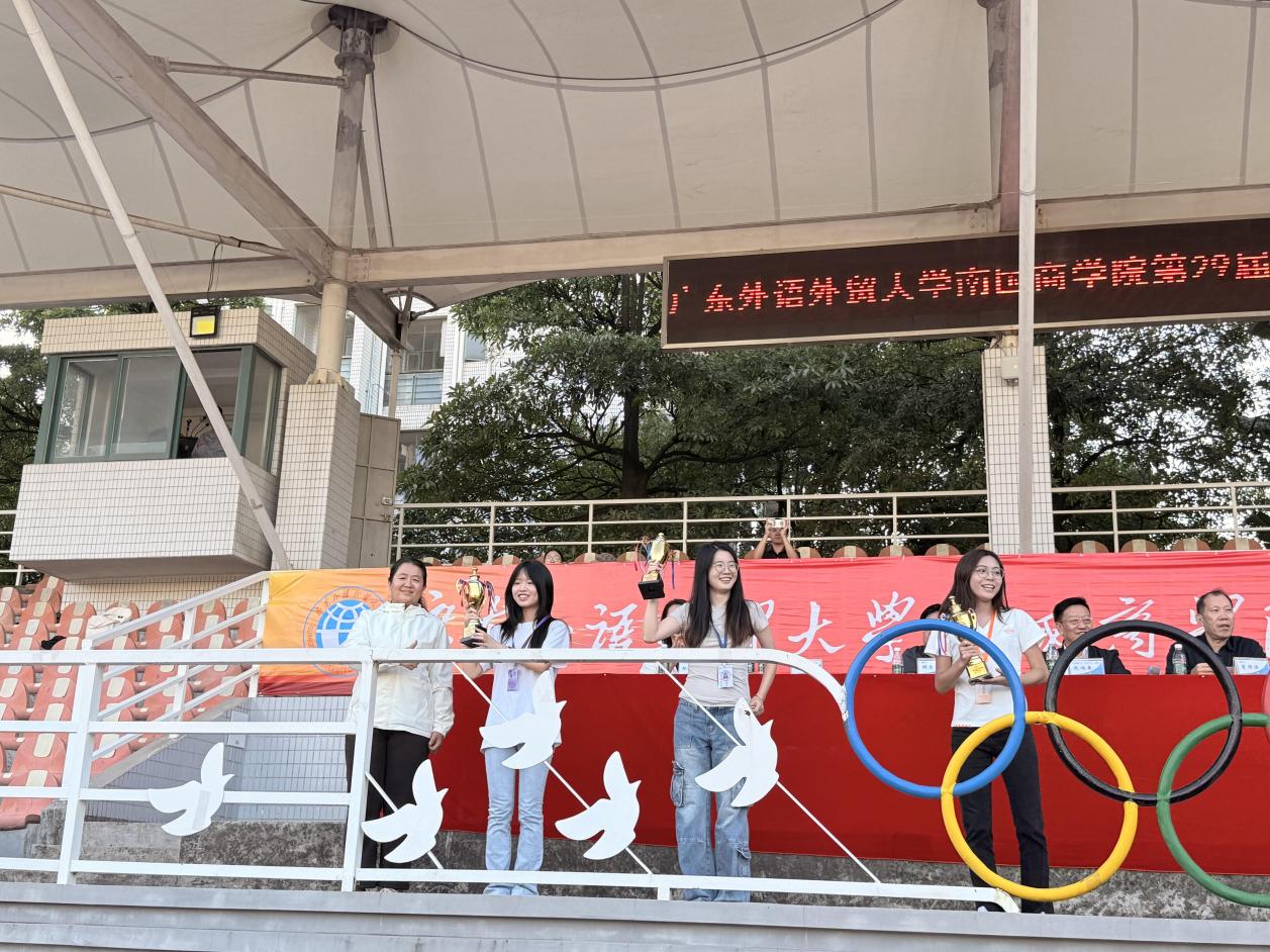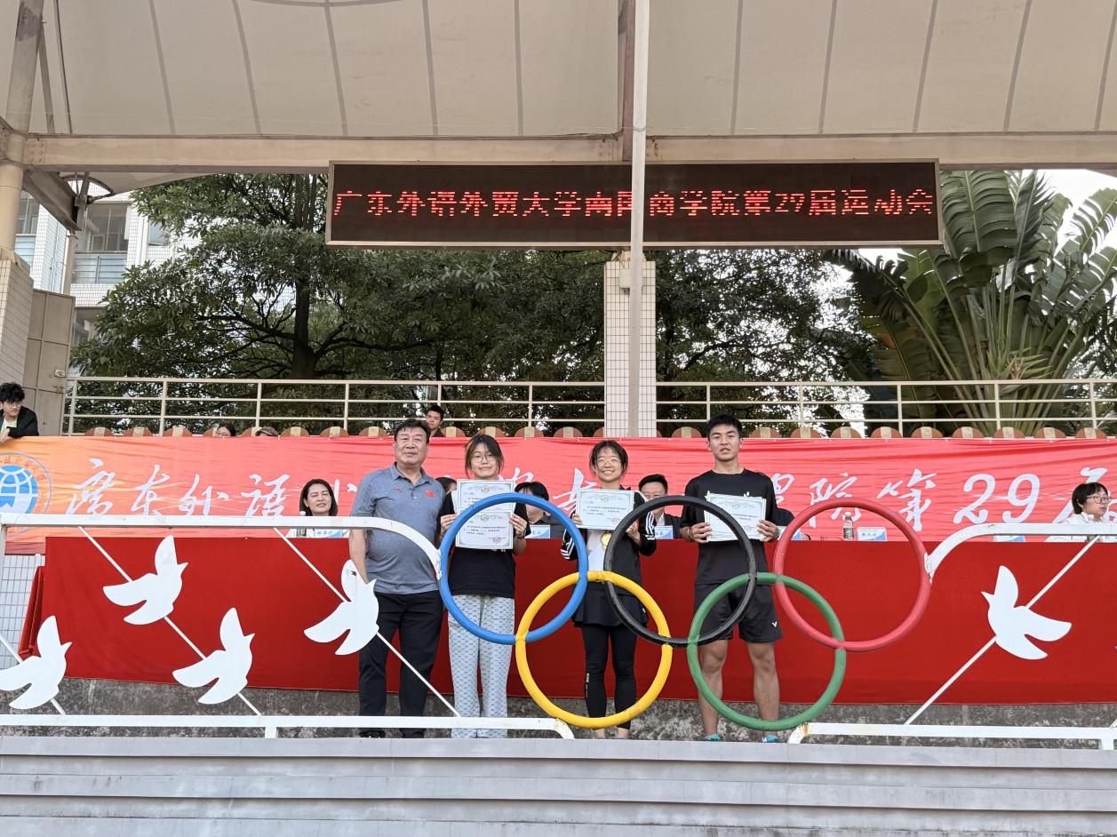 闭幕式上,校领导的获奖名单念出时,掌声与欢呼此起彼伏。我院收获颇丰:男子团体总分第三名、女子团体总分第三名,曹惠思同学以腾空跃起的一跳,同时刷新女子跳远与三级跳远的校运会纪录;我院斩获的团体总分第二名证书,搭配学生组体育道德风尚奖奖状,让领奖队伍成为场边最亮眼的风景。